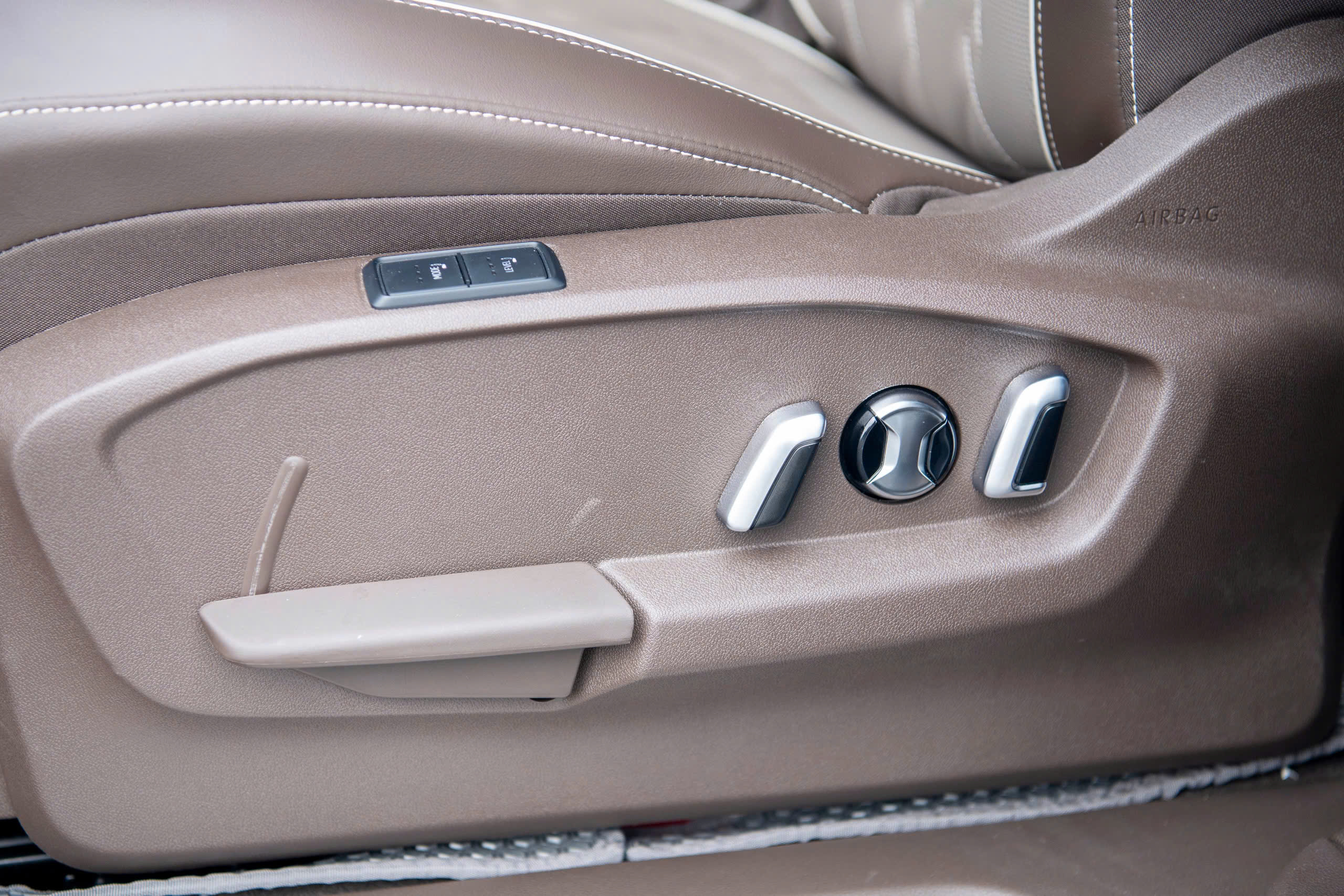 Các nút bấm ở hàng ghế 2 được bố trí khá đơn giản và tiện dụng, chỉ duy nhất tiến lùi ghế là chỉnh cơ, còn các tính năng ngả ghế, đỡ đệm lưng, nâng đỡ bắp chân đều chỉnh điện. Các chi tiết nhỏ như giá đỡ cốc, cổng sạc Type – C được giấu khá tinh tế. Trước mặt người ngồi sẽ là màn hình cảm ứng chỉnh điều hòa. Người dùng có thể tùy chỉnh chức năng massage 3 chế độ đi kèm sưởi ghế, làm mát.